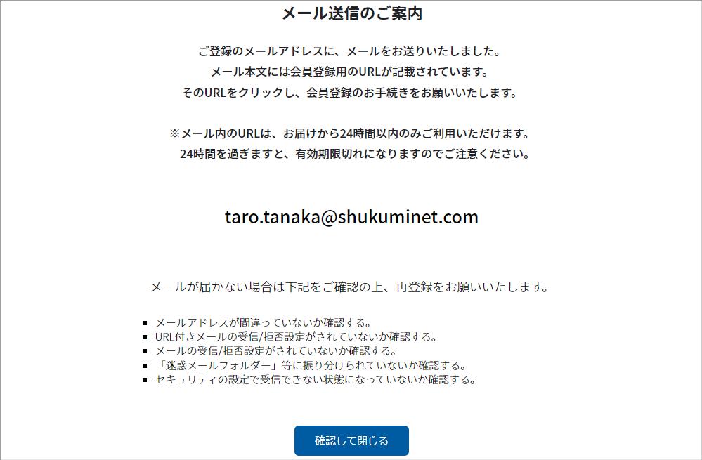 - ご登録したメールアドレス宛に、本登録用のメールが送信されます。