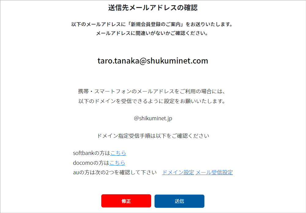 - メールが届かない場合は、画面案内をご確認の上、再登録をお願いします。