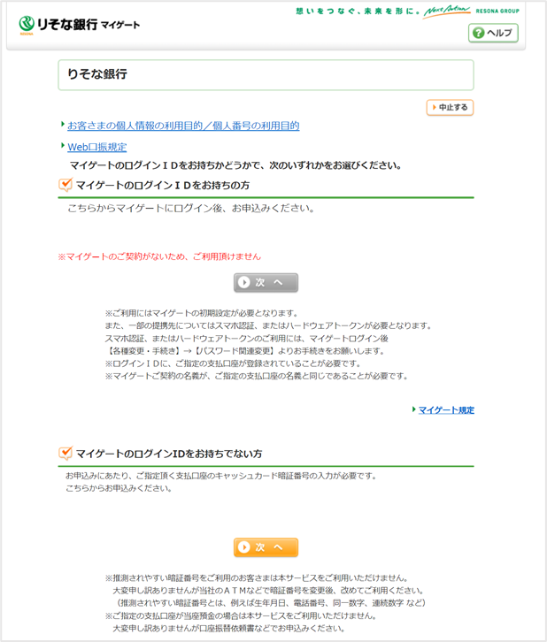 口座登録>りそな銀行