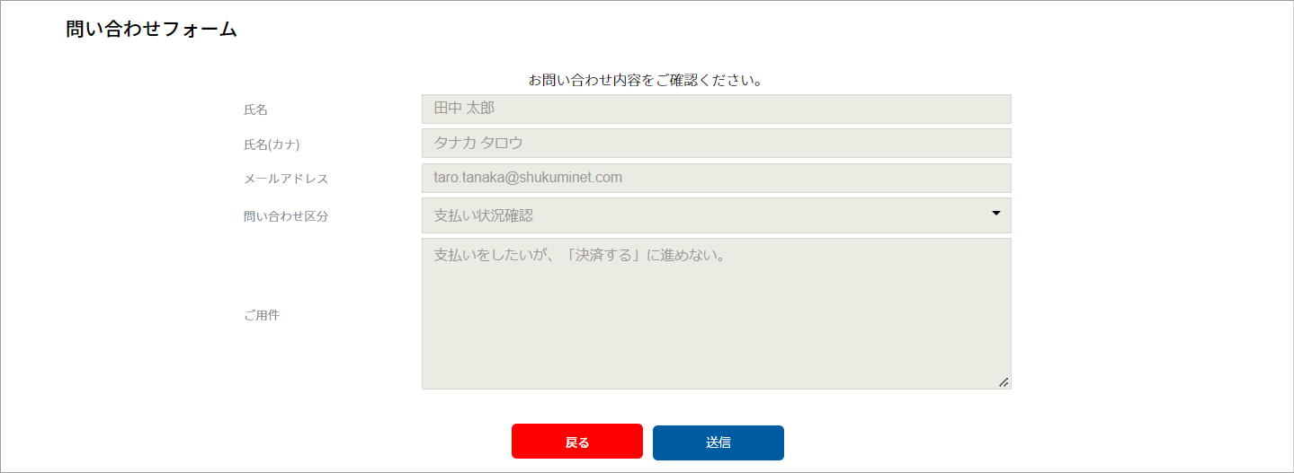 ⑥お問い合わせ内容を確認し、「送信」をクリックします。